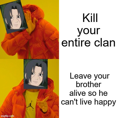 If you find this site serviceableness, please support us by sharing this posts to your preference social media accounts like Facebook, Instagram and so on or you can also Download this blog page with the title Itachi Kills Clan Meme by using Ctrl + D for units a laptop with a Windows operating system or Command + D for laptops with an Apple operating system. If you use a smartphone, you can also use the drawer menu of the browser you are using. Whether it's a Windows, Mac, iOS or Android operating system, you will still be able to bookmark this blog.